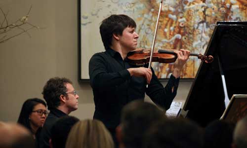 Ten years after his first memorable Michael Palm Series appearance, superstar violinist Joshua Bell brought the 2013-2014 season to a resounding close February 3 in an unforgettable New York City house concert.